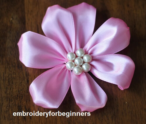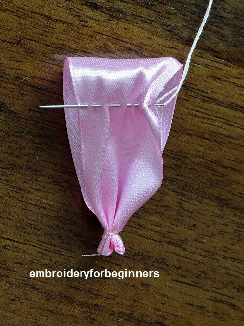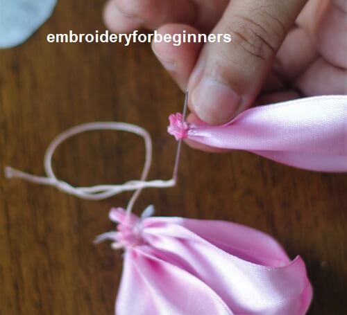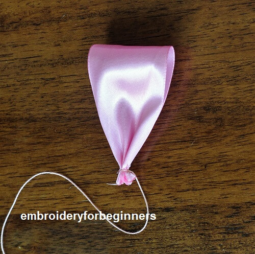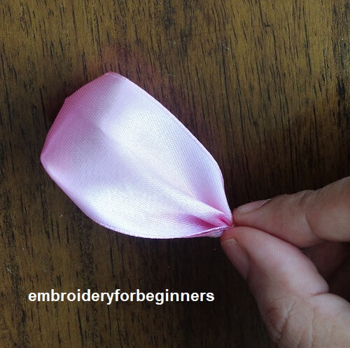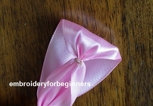 5. Turn over and push the edges of the ribbon to form a petal. Repeat with the rest of the ribbon.